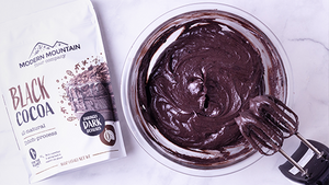 Here's a wonderfully fluffy chocolate cream cheese frosting recipe. Made with Modern Mountain black cocoa powder, it has a cheerfully chocolate color and a deep, smooth flavor. It's finds a happy home on any chocolate cake or cookie!