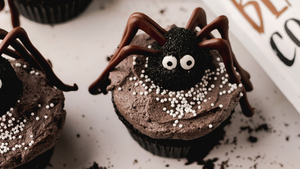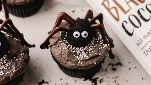 These super fun, black cocoa spider cupcakes are loaded with Modern Mountain Black Cocoa Powder in both the cupcake, and the chocolate frosting. Topped with a creepy spider with very long legs, these black cocoa cupcakes make the most perfect Halloween treat!