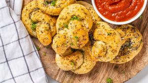 Made with Modern Mountain Keto Pizza Crust Mix, these keto breadsticks are great for anyone wanting a classic pizza or salad side dish. Get a bit fancy with a crispy, spiral breadstick or roll them for a pillowy, pull-apart center. Topped with a garlic and herb butter sauce for maximum flavor.