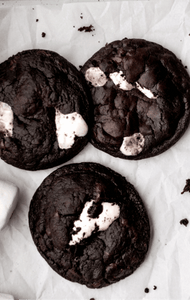 These extra thick and chocolatey cookies get their intense chocolate flavor and color from Modern Mountain’s black cocoa powder. They are loaded with chocolate chips and filled with a gooey marshmallow in the center. These cookies are an indulgent, rich cookie treat that everyone will love!